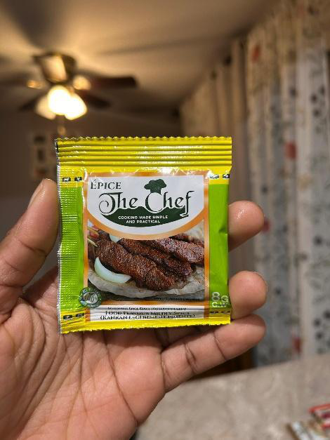 Ingredients: Rondelles, Pebe, Poivre noir, Djindja, 4 cotes , Clou de jirofle, sel, curry, arachides, Ail.